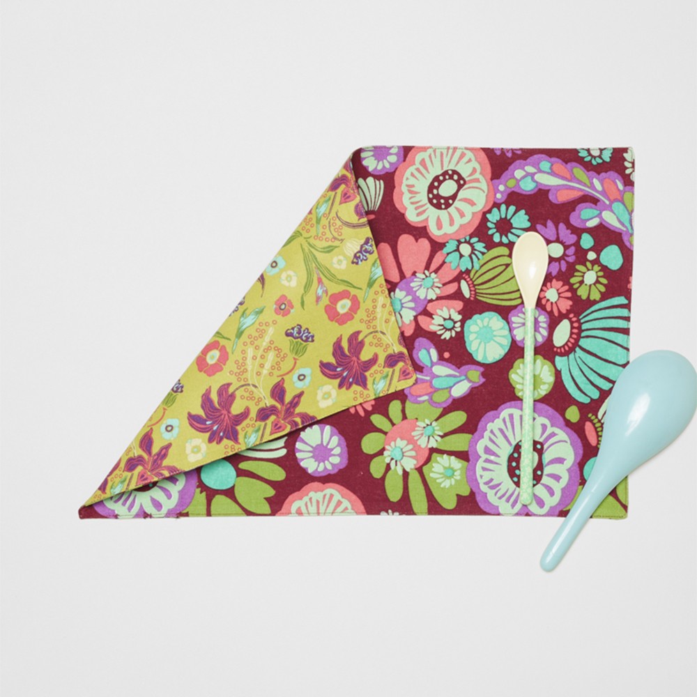 De superbes sets de table double épaisseur de beau coton bio. Réversibles, ils accompagneront vos repas au quotidien de la maison au jardin !