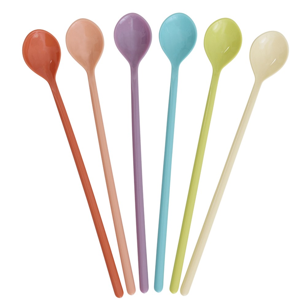 Lot de 6 longues cuillers aux tons assortis pour faire de chaque repas une fête colorée ! Parfaites pour servir les sauces comme les coupes glacées, ou pour mélanger les caffé latte à la mode nordique !