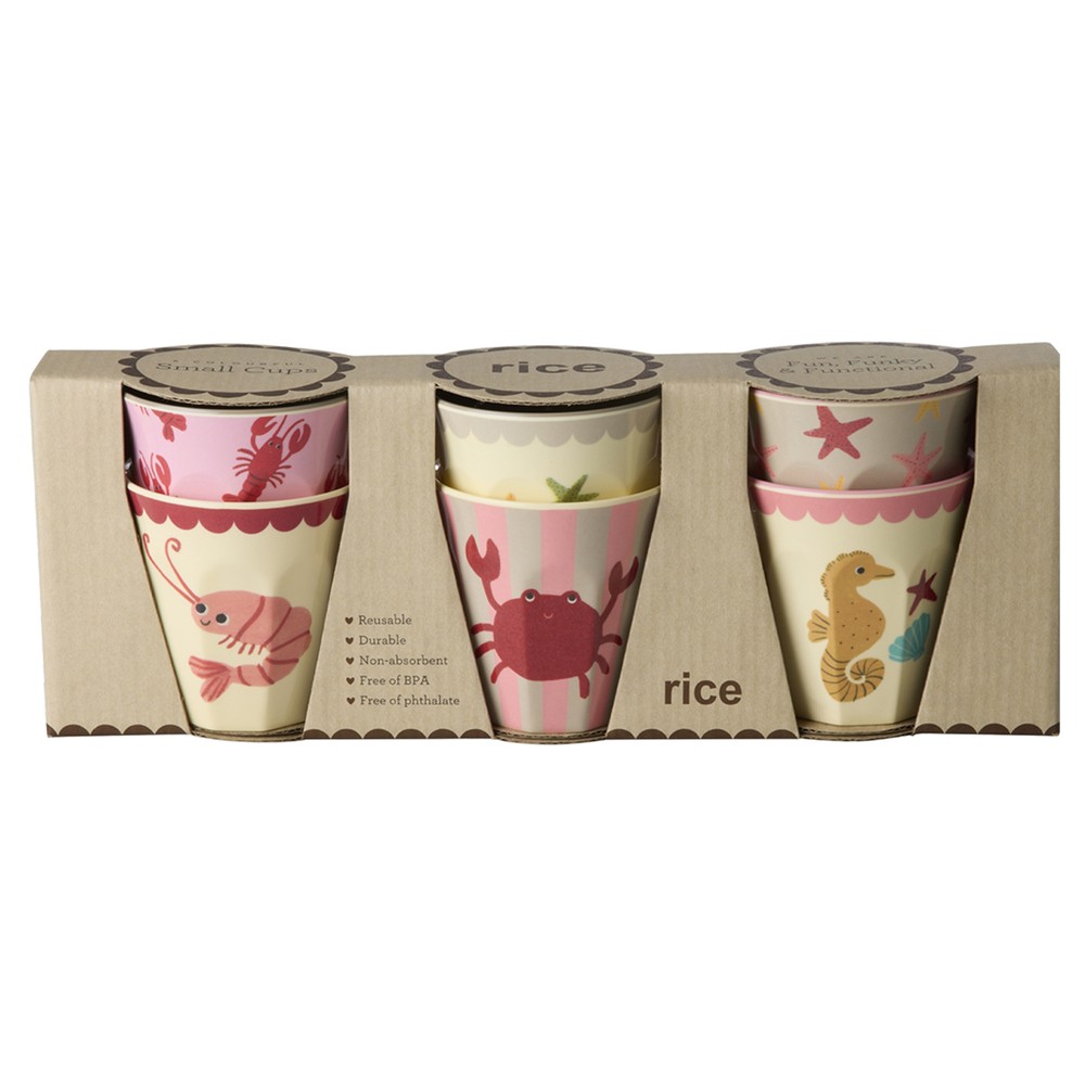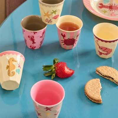 6 ravissants gobelets en mélamine, motifs assortis, petit format, parfaits pour les enfants ou le café.