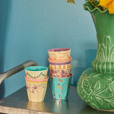 6 ravissants gobelets en mélamine, motifs assortis, petit format, parfaits pour les enfants ou le café.