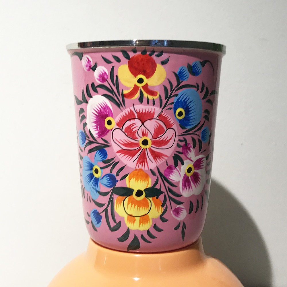 Pour siroter son thé ou son café, ou à emmener en balade (elle est incassable!), une petite œuvre d'art à promener partout ! Inox alimentaire peint et émaillé main dans la région du Cachemire (Inde du nord)
