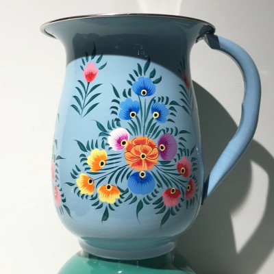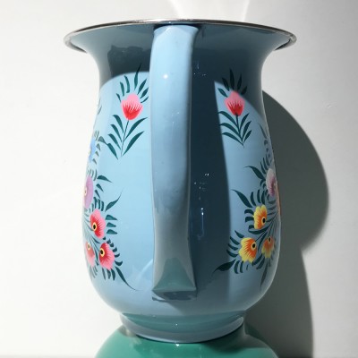 Pichet en inox peint à la main Folk bleu ciel