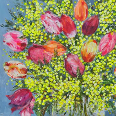 SA411 - Le vase aux tulipes et mimosa
